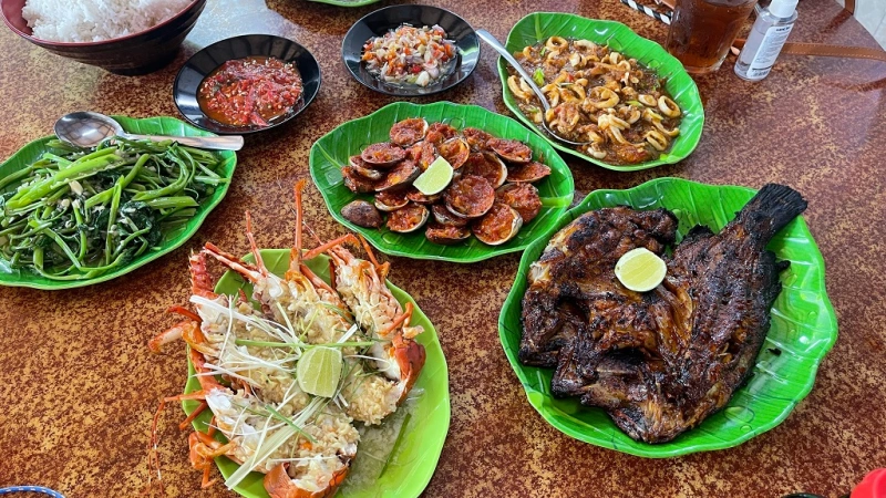 Warung Bu Rini Serangan Seafood merupakan kuliner Bali kekinian dan halal yang wajib kamu coba. Sesuai dengan namanya, warung ini menjual berbagai seafood mulai dari cumi, lobster, udang, kepiting, dan kerapu.