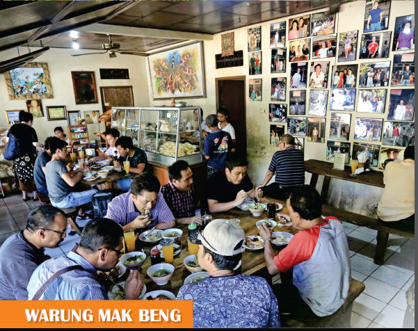 Tempat makan ini cocok untuk dikunjungi saat jam makan siang. Satu porsi nasi di sini sudah dapat berbagai macam lauk seperti abon sapi, tempe kering, mie dan ayam goreng. Selain itu, di sini juga ada menu paru sapi yang gurih di luar tapi empuk di dalam, juga tidak amis. Yang menjadi andalan warung ini adalah sambalnya. Semua ini bisa kita santap dengan harga 20.000 – 30.000 saja.