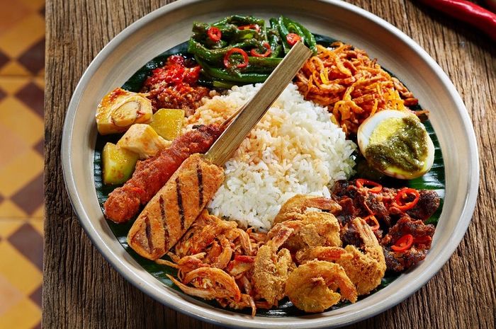Warung ini menyediakan 2 macam menu, yaitu nasi campur ayam dan nasi campur sapi. Jika kamu bingung memilih, di sini kamu bisa minta untuk mencampur keduanya. Lauknya cukup banyak, mulai dari telur, ayam suwir, udang goreng renyah, sate tusuk, sate lilit, sayur, dan dendeng balado. Rasa sambalnya yang tidak terlalu pedas dan terasa gurih membuat makanan ini cocok untuk dimakan semua kalangan termasuk anak-anak.