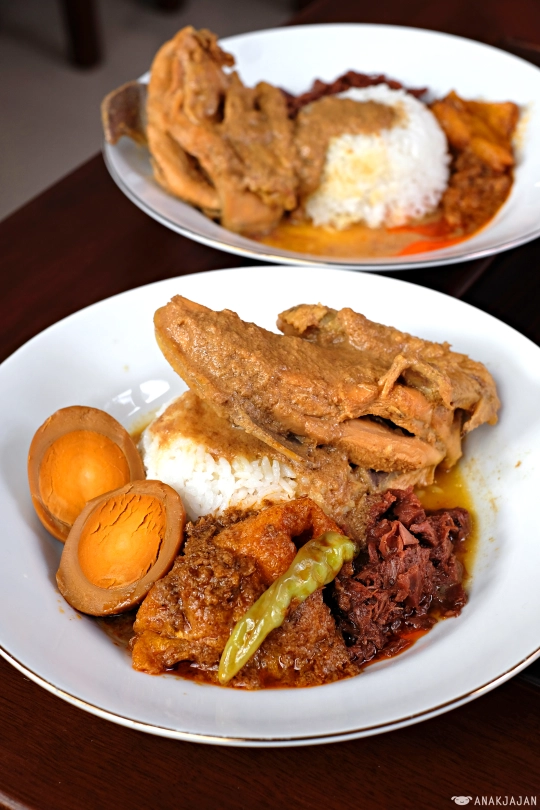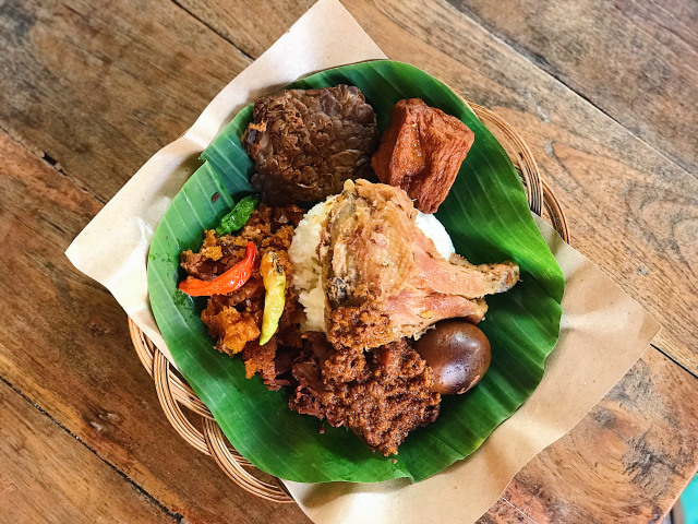 - Gudeg: makanan khas Jogja ini terbuat dari nangka muda yang dimasak dengan santan, gula merah, dan bumbu rempah. Gudeg biasanya disajikan dengan nasi, ayam, telur, tahu, tempe, krecek, dan sambal goreng. Gudeg dapat ditemukan di berbagai tempat, mulai dari warung pinggir jalan hingga restoran mewah. Salah satu tempat yang paling terkenal untuk menikmati gudeg adalah Jalan Wijilan, yang berada di dekat Keraton Jogja.