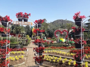 bunga Begonia dan bunga tropis lainnya yang ditata dalam bentuk-bentuk unik. Keindahan warnanya yang kontras dengan hijau pegunungan Lembang membuat tempat ini menjadi latar foto keluarga yang sempurna.