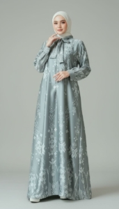 Gamis berbahan Armani Silk menjadi salah satu pilihan unggulan untuk Lebaran 2026. Material sutra yang lembut, jatuh, dan memiliki kilau halus memberikan kesan mewah sekaligus nyaman dikenakan. Potongan longgar dengan detail sederhana menambah sentuhan elegan tanpa berlebihan. Dipadukan dengan tren warna Lebaran 2026 seperti sage green atau dusty pink, penampilanmu akan tampak semakin anggun, segar, dan memikat di Hari Raya.