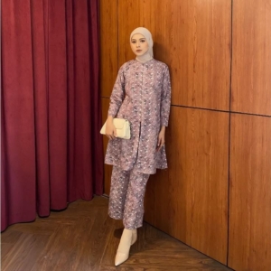 Tunik berbahan brokat tipis yang dipadukan dengan inner polos mampu menciptakan kesan formal sekaligus tetap nyaman untuk dikenakan saat Lebaran. Brokat memberikan nuansa mewah dan elegan, sementara lapisan polos menjaga sirkulasi udara agar tidak terasa panas. Model ini ideal untuk menghadiri acara resmi keluarga, seperti halal bihalal, jamuan makan besar, atau kunjungan ke rumah kerabat, tanpa mengurangi kenyamanan pemakaiannya.