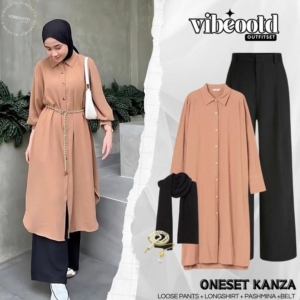 Tunik dengan belt tipis di pinggang membantu menonjolkan siluet tubuh secara proporsional tanpa terasa ketat. Saat dipadukan dengan celana straight, palazzo, atau rok longgar, model ini menghadirkan keseimbangan antara kenyamanan, keleluasaan bergerak, dan gaya stylish. Busana ini cocok dikenakan dalam berbagai suasana Lebaran, baik acara santai maupun semi-formal, sehingga tetap praktis sekaligus elegan.